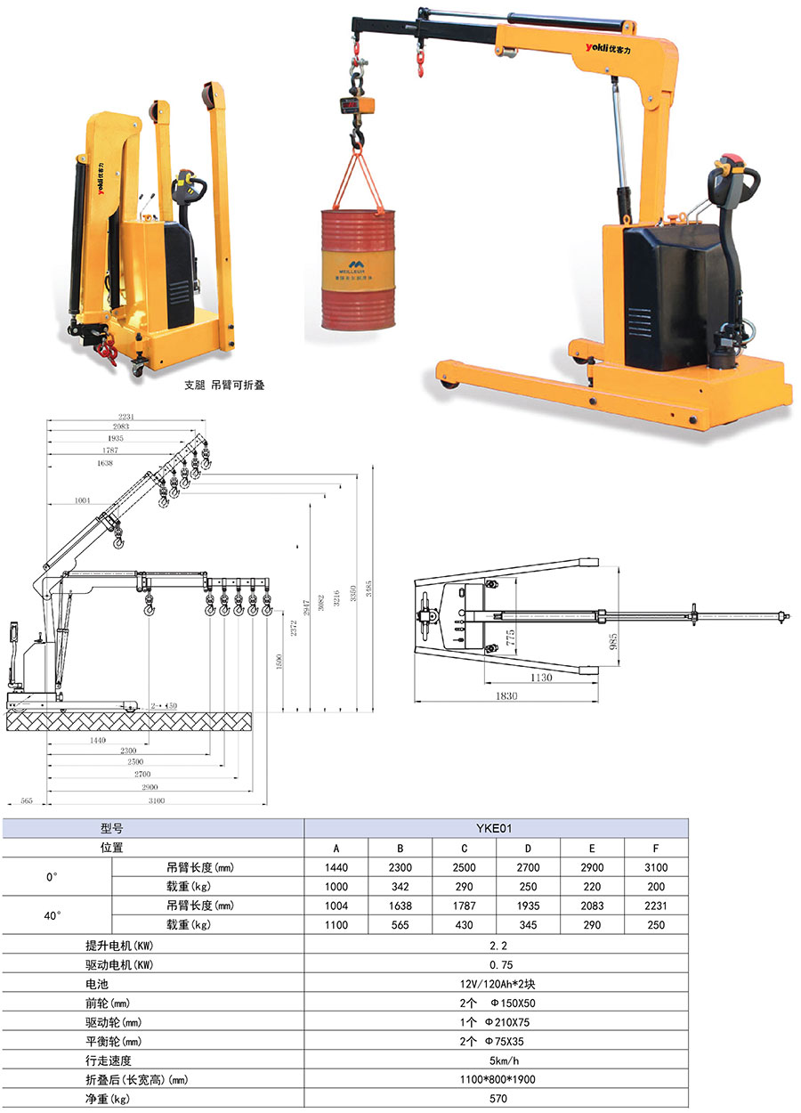 ● 注意:吊臂越長對應(yīng)載荷越小,請注意對應(yīng)載重,確保安全。
