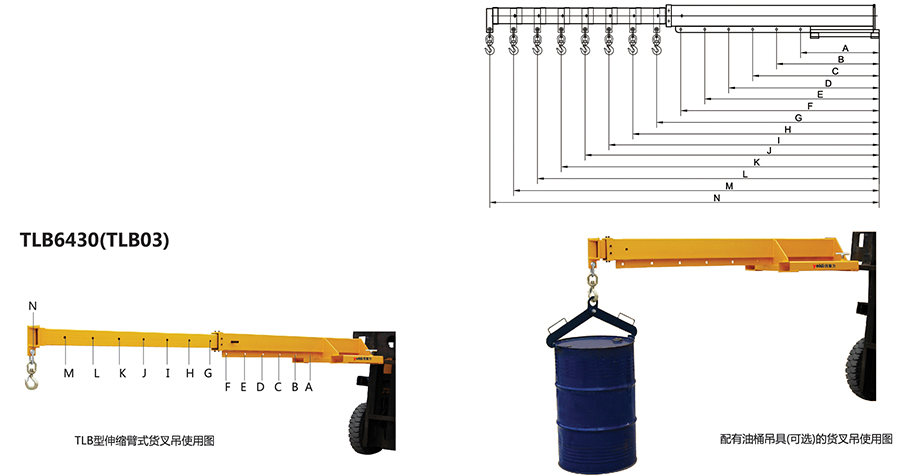 ● 可調(diào)伸縮超長(zhǎng)吊臂, 適用于叉車不易進(jìn)入的區(qū)域進(jìn)行操作。