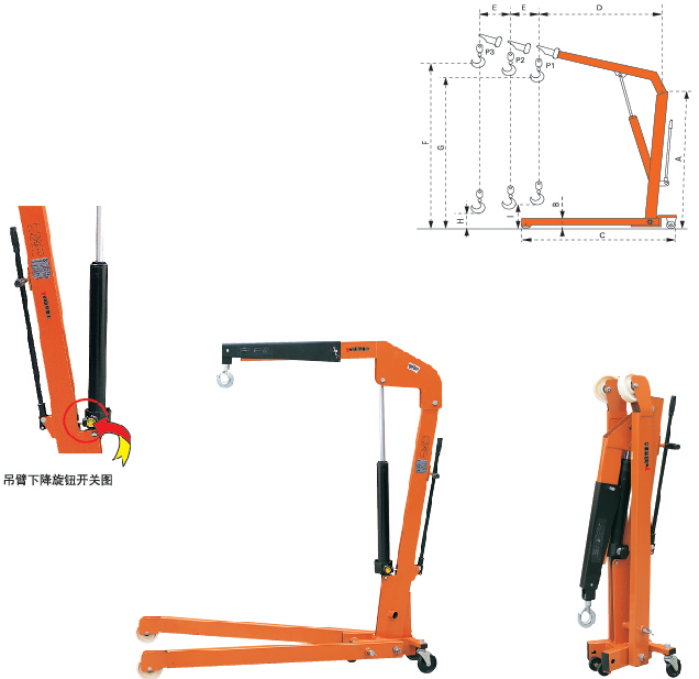 ● 根據(jù)需要,吊臂可三個工位調節(jié)。