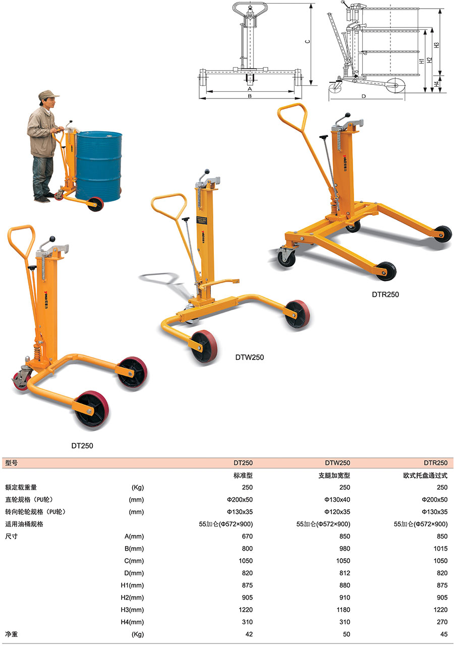 DT標(biāo)準(zhǔn)型液壓油桶搬運車
